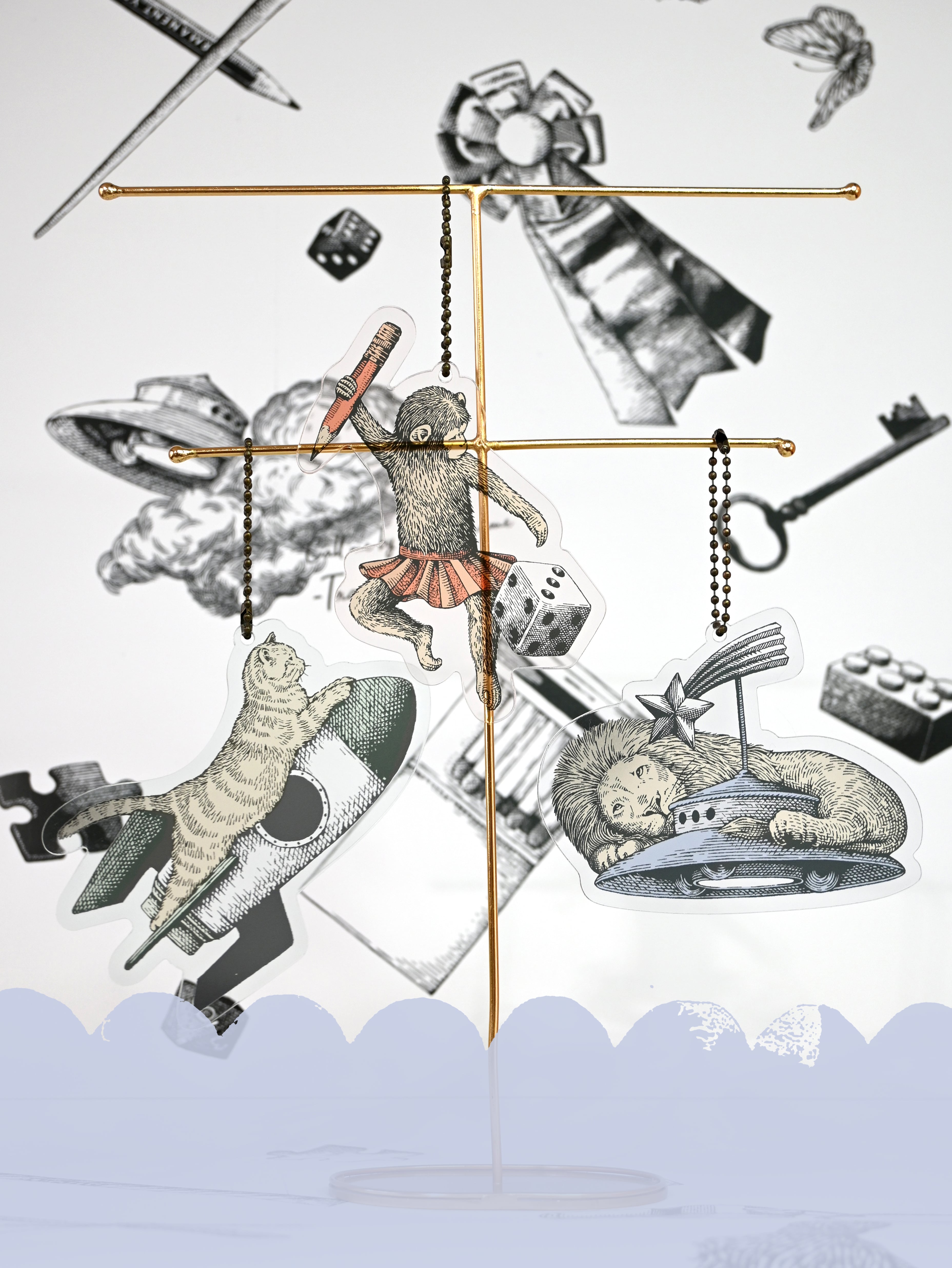 先日開催した個展「Traveler」に合わせて制作した「宇宙からやってきた動物たちのアクリルキーホルダー」