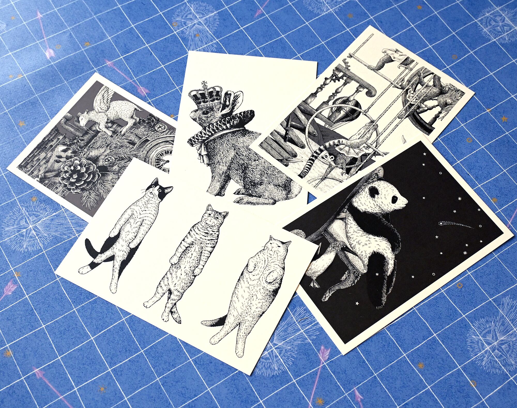 ペン画のイラスト5点のポストカードセットです。